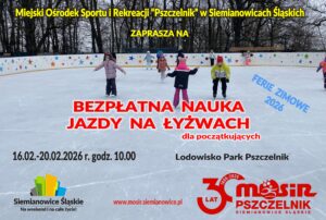 Zajęcia dla dzieci z Siemianowic Śląskich odbywać się będą na lodowisku w Parku „Pszczelnik” w pierwszym tygodniu ferii zimowych, od 16 lutego do 20 lutego.