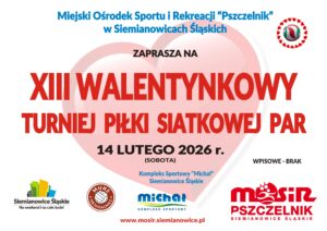 Miejski Ośrodek Sportu i Rekreacji „Pszczelnik” w Siemianowicach Śląskich serdecznie zaprasza miłośników siatkówki do udziału w trzynastej edycji Walentynkowego Turnieju Piłki Siatkowej Par.